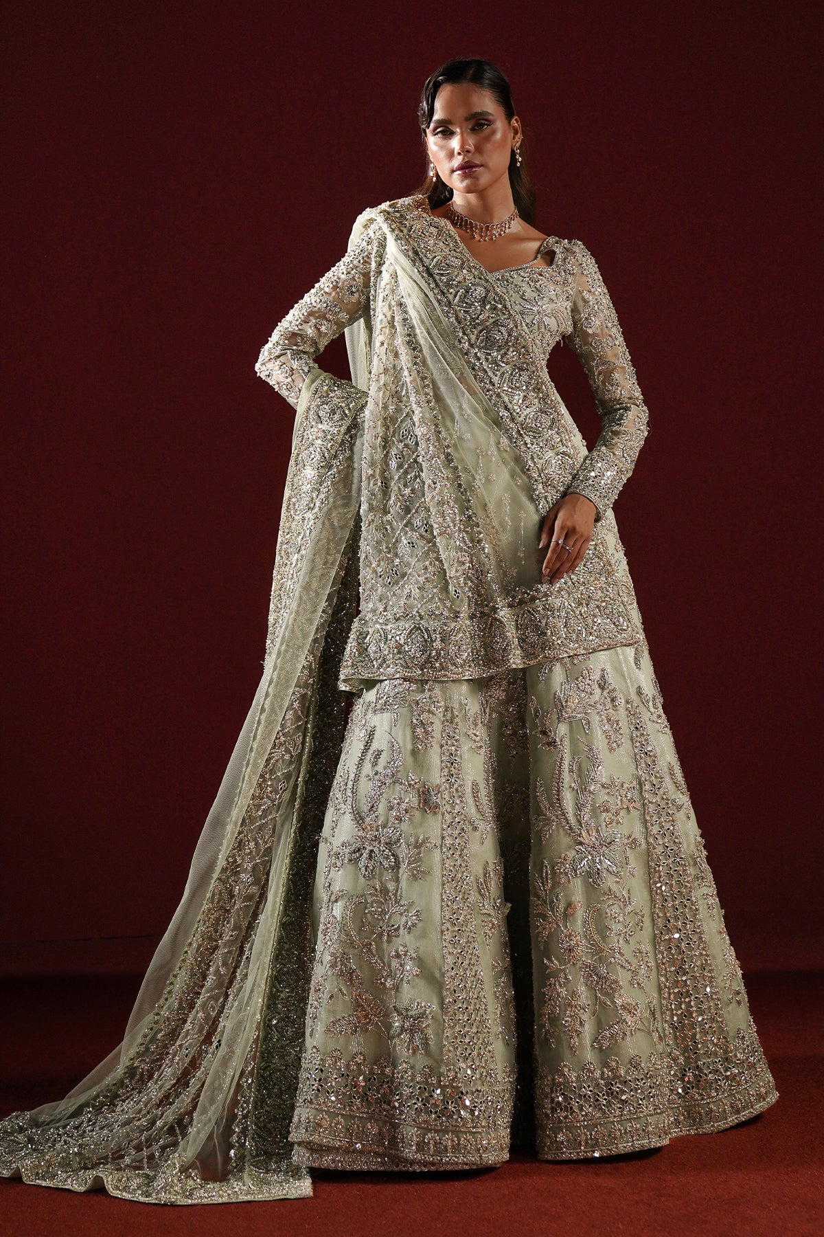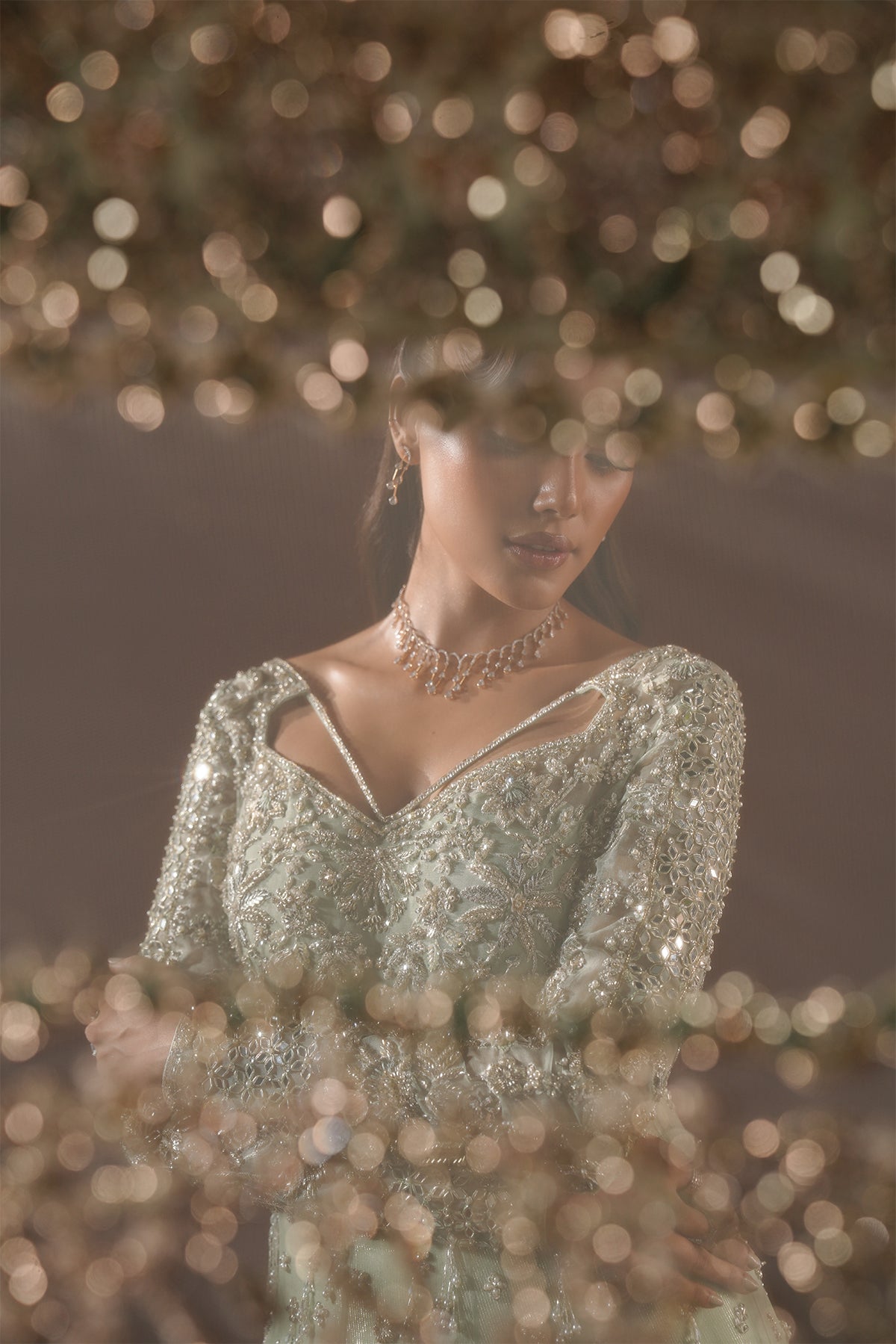 The Peshwas, crafted from lame`, in a radiant view, with borders embellished, and a mix of zardozi small pearl and crsytal tassels, mirror and gota work, a story to tell, each stitch whispers secrets, weaving a spell.