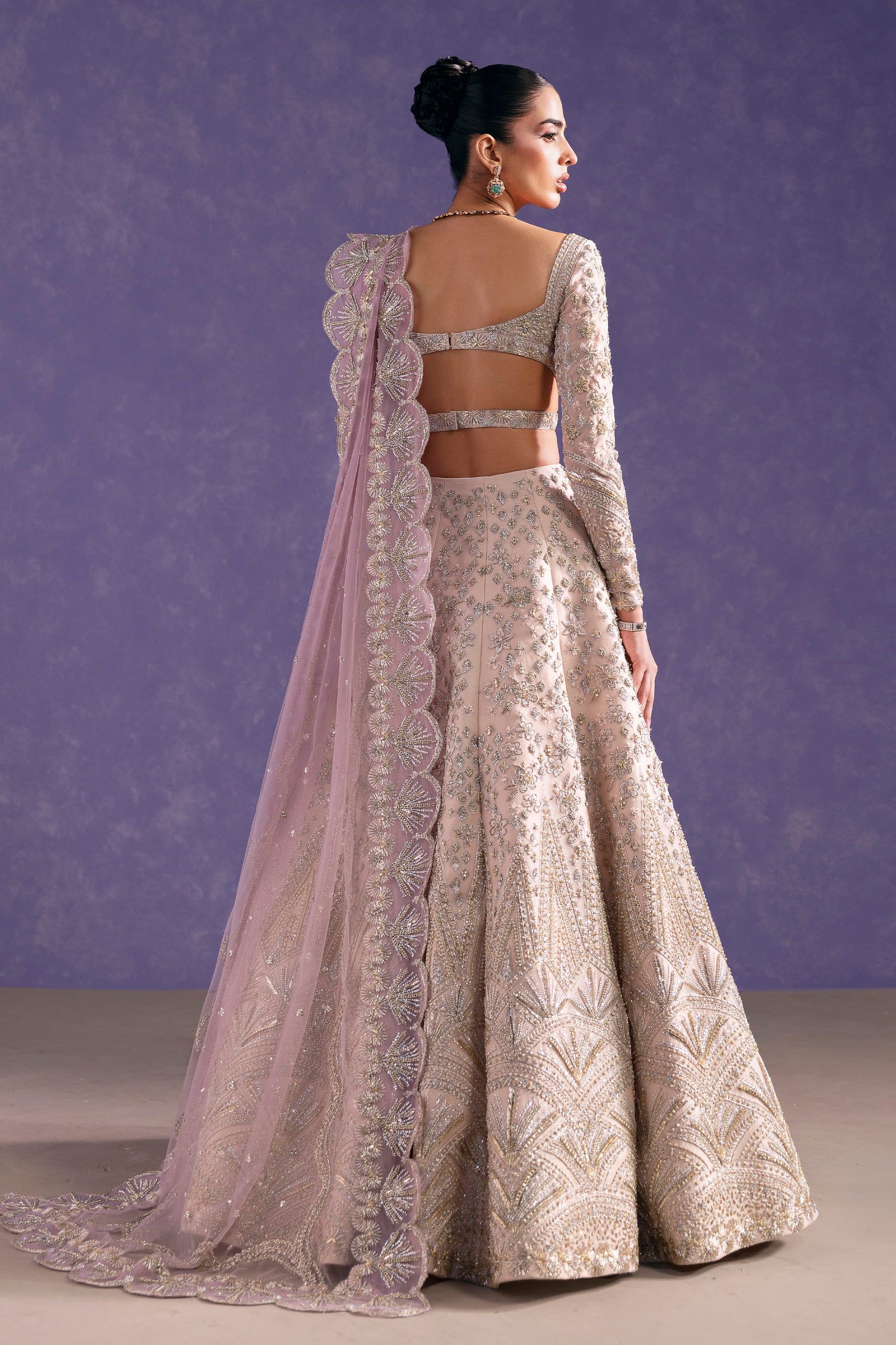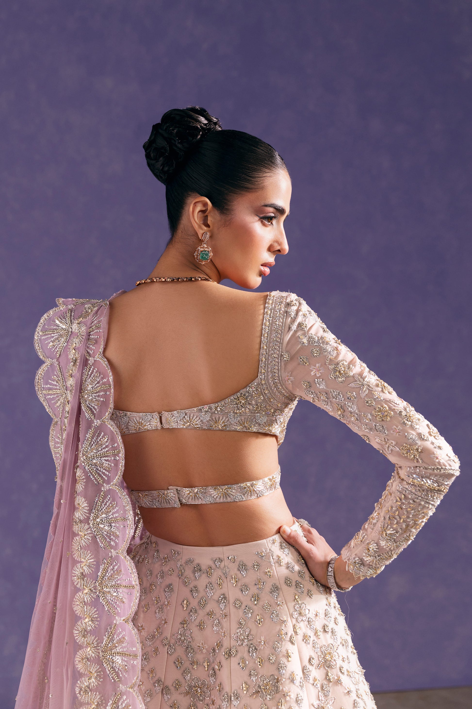 Sculpted into a silhouette that gleams with grandeur, regality, and the poetry of craft.” Inspired by the classical Ganga-Jamna tradition, this bridal is softly crafted in the artful separation, blending, and intersecting of radiant gold and silver—woven into a compositional maze where florals entwine with geometry to create a mesmerizing vision.